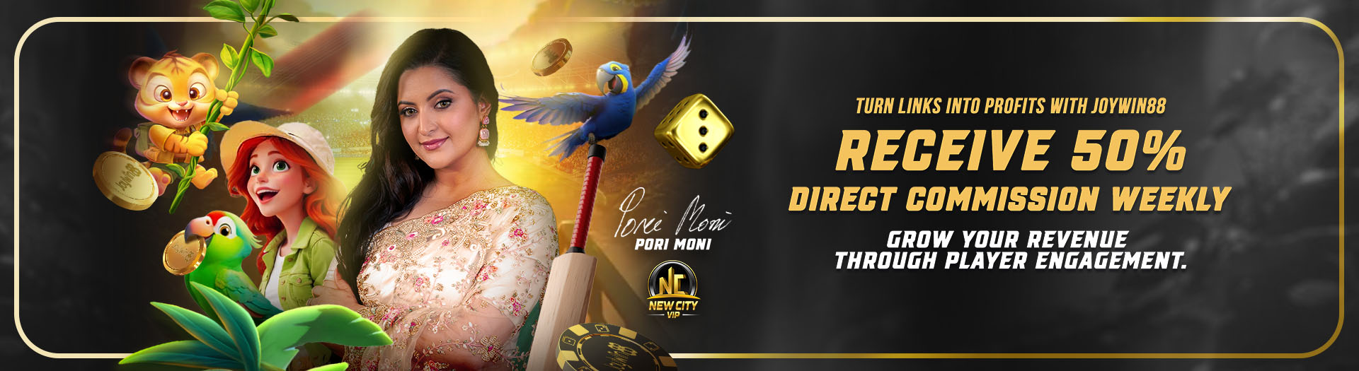 - Earn direct 50% commission weekly from player net losses with JoyWin88.